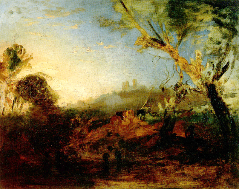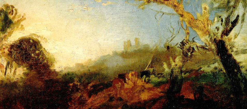 A richly coloured oil sketch combining two of De Wint’s favourite elements, Lincoln Cathedral and nature.
