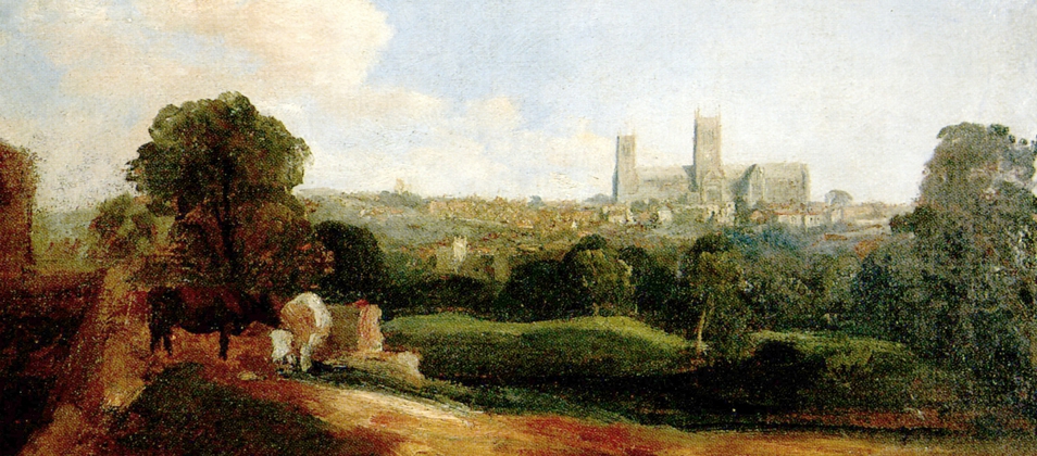 De Wint was introduced to Lincolnshire by fellow apprentice, friend and future brother in law William Hilton (1786-1839). In 1809 he became a student at the R.A. and the following year married Harriet Hilton. In 1814 De Wint bought some property near the south-west corner of Lincoln Castle at the junction of Drury Lane and Union Road, which was also occupied by Hilton when they were in Lincoln. With the exception of a visit to Normandy, his travels were confined to England and Wales.