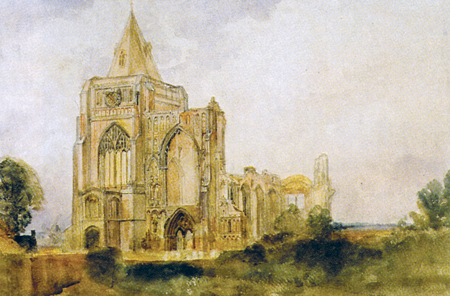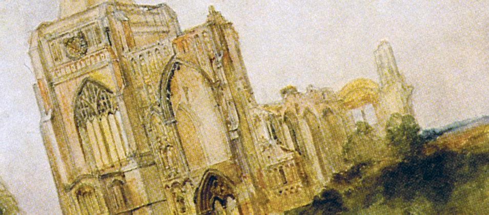De Wint concentrates heavily on the intricate architectural details of the Abbey, whose splendour has been reduced to picturesque ruins.