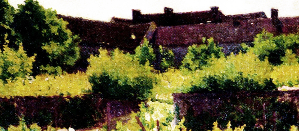 A rural scene captured at the end of a summer’s day when the light transforms the leaves into a shimmering green. The colours and tones of the leaves indicate that they were Warrener’s main preoccupation.