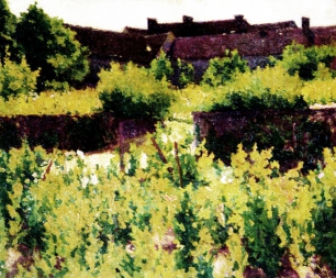 The garden is brimming over with wildlife and the promise of fruit from the vine. The dark and shadowy house and walls lose significance, their only purpose it seems is to provide a contrast for the bright leaves.